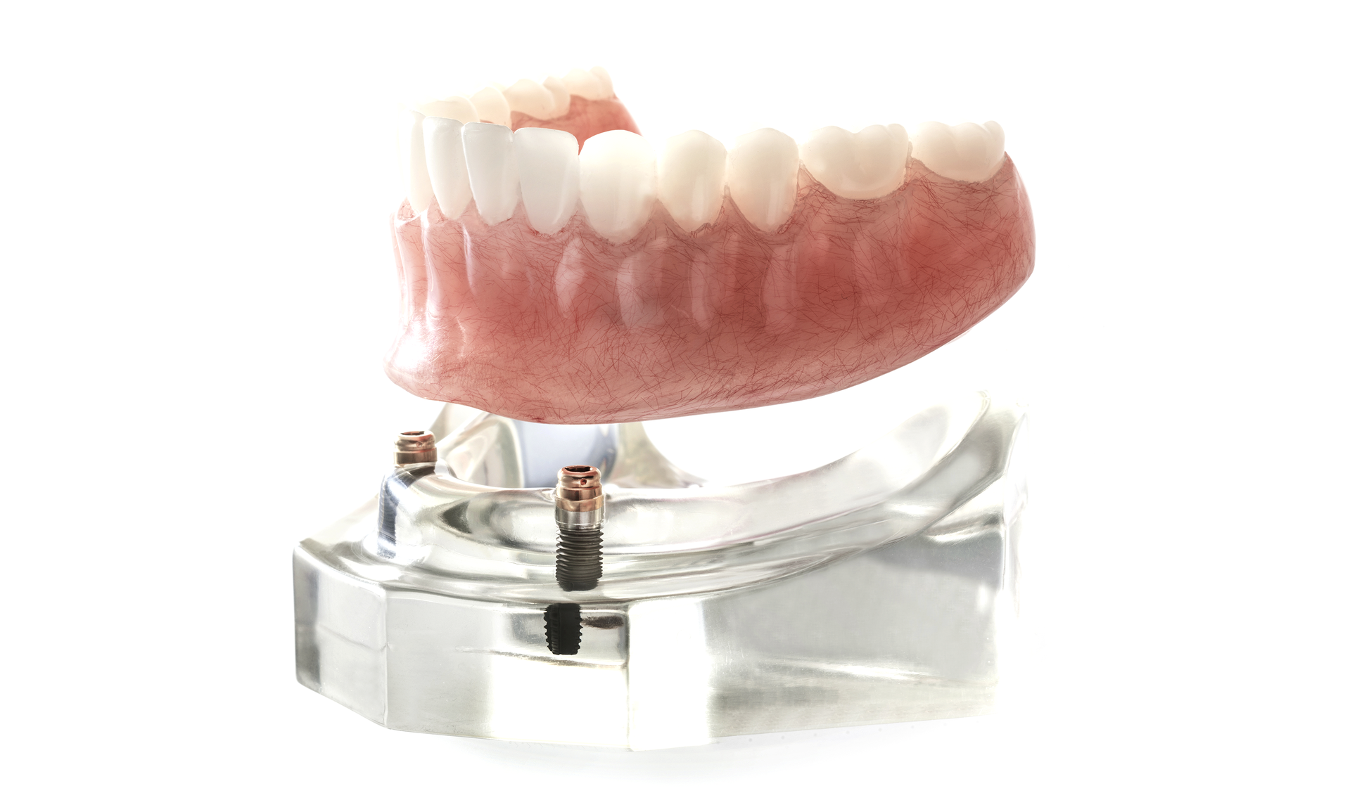 임플란트를 잇몸 뼈에 심고, 그 위에 틀니를 고정하여 안정감을 높인 방식